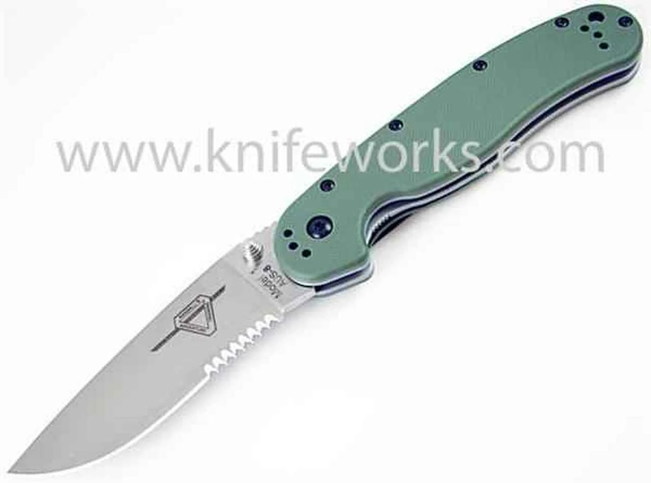 Ontario Rat Folder, Satin Blade, OD Green Handle, Combo Edge
