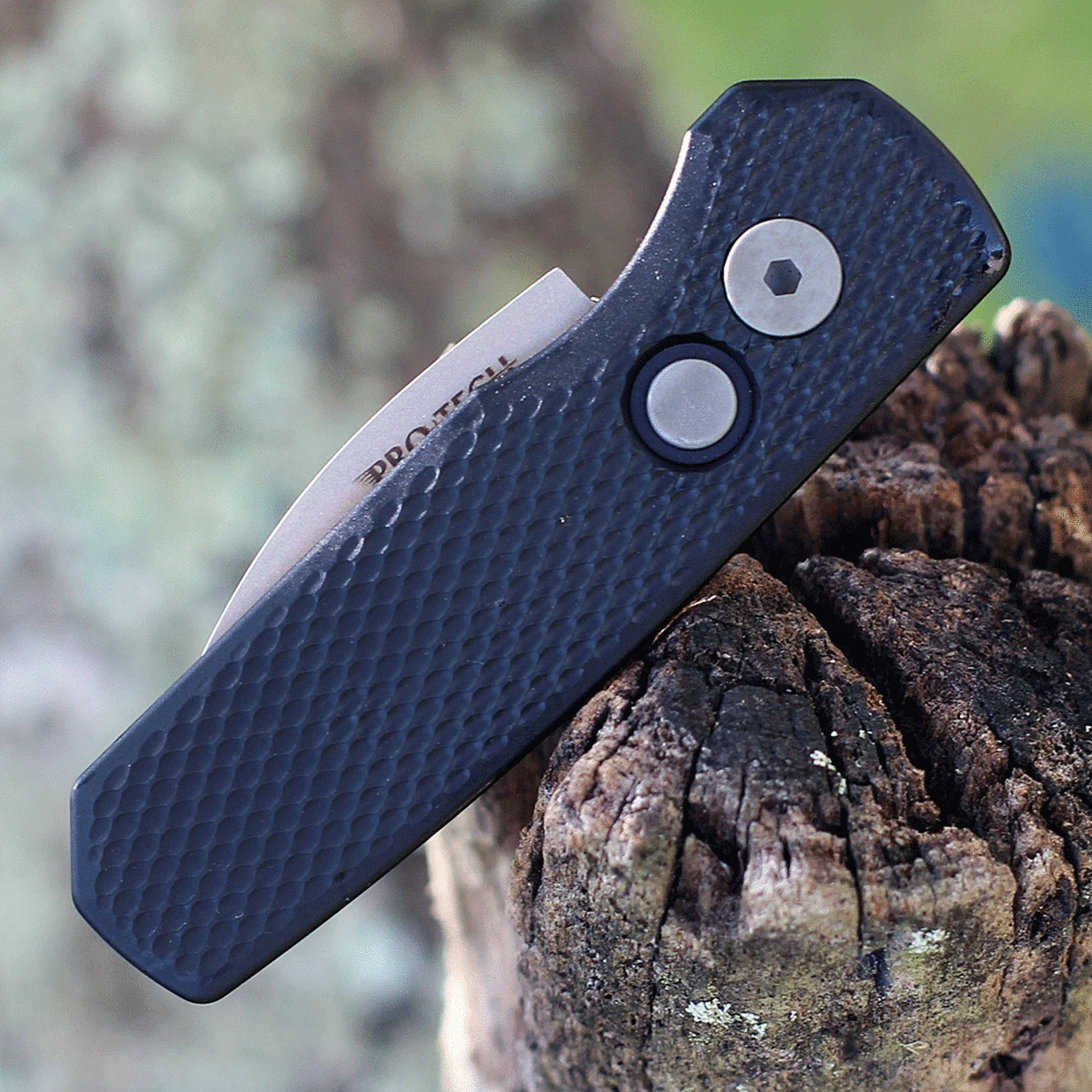 The Runt 5 automatic knife is Pro-Tech’s newest take on their classic Runt model. The handle is small, but well shaped to fit the human hand, making it comfortable to hold. This pocket-friendly auto comes with a secure pocket clip and lanyard.