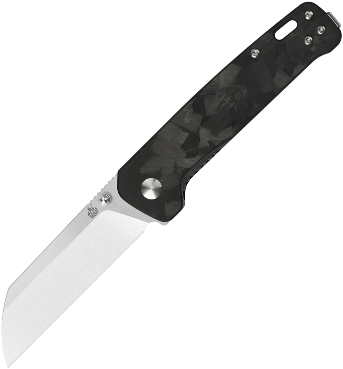 QSP Knife Penguin Folding Knife (QS130-T) – 3.06″ D2 Two-Tone Satin Sheepsfoot Blade, Black G-10 with Shredded Carbon Fiber Overlay Handle