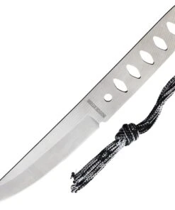 7.5″ (19.05cm) overall. 3.75″ (9.53cm) satin finish stainless blade. One-piece construction. Black and white cord lanyard. Black nylon belt sheath. Boxed.