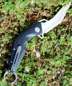 Artisan Cutlery Artisan Cobra ATZ1811PBGC, 3″ D2 Plain Blade, Curved Black/White G-10 Handle