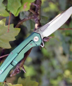 Artisan Cutlery Artisan Zumwalt ATZ1808GGNS, 3.78″ S35VN Plain Blade, Green Titanium Handle