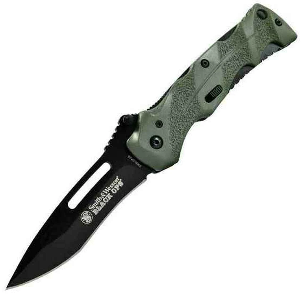 Smith & Wesson Black Ops 2, Green Aluminum Handle, Black Blade, Plain Edge