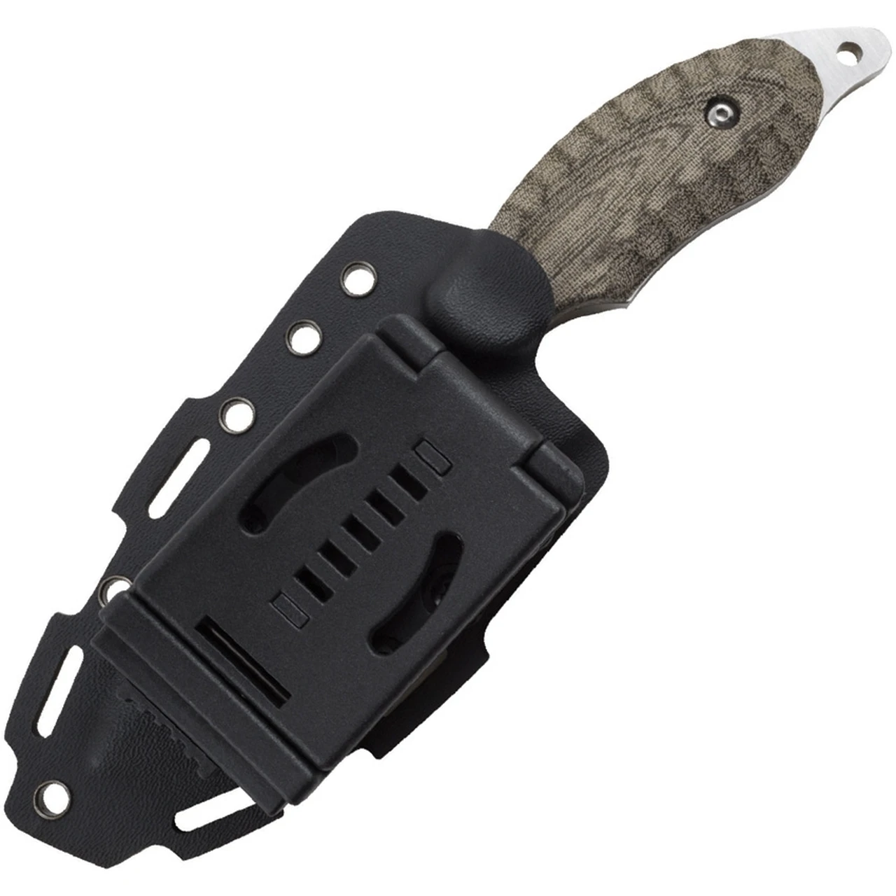 SOG partnered with Kiku Matsuda, one of the foremost tactical knife designers and blade grinders in Japan, to produce a line of knives. Matsuda’s decades of experience in blade grinding and making fixed blade knives has created one of the most unique, striking, and functional blades available. This Kiku fixed blade features Matsuda’s trademark and distinctive blade and handle grinds on a smaller 4-inch S35VN steel blade and linen Micarta handle. The full tang handle uses elegant linen Micarta slabs that are rugged, easy to clean, look better the more it is used, and offer superior grip in wet or dry conditions. It comes in a versatile Kydex sheath with an adjustable low-profile, locking mount.