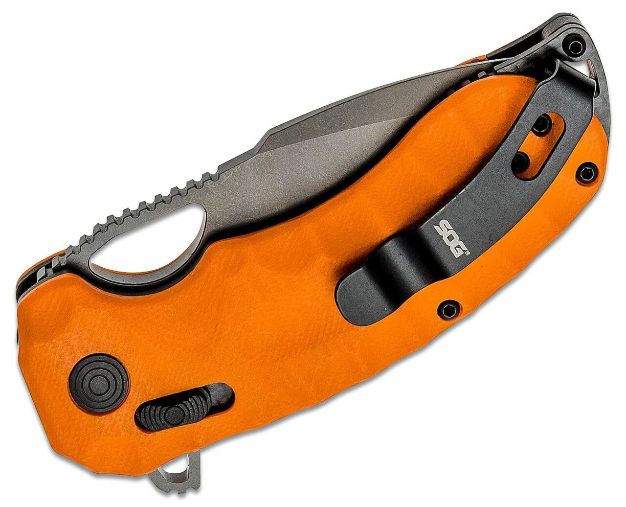SOG Kiku XR LTE – Blaze 12-27-03-57, 3.02″ CTS-XHP Gray Tanto Plain Blade, Orange G-10 Handle with Carbon Fiber Liners