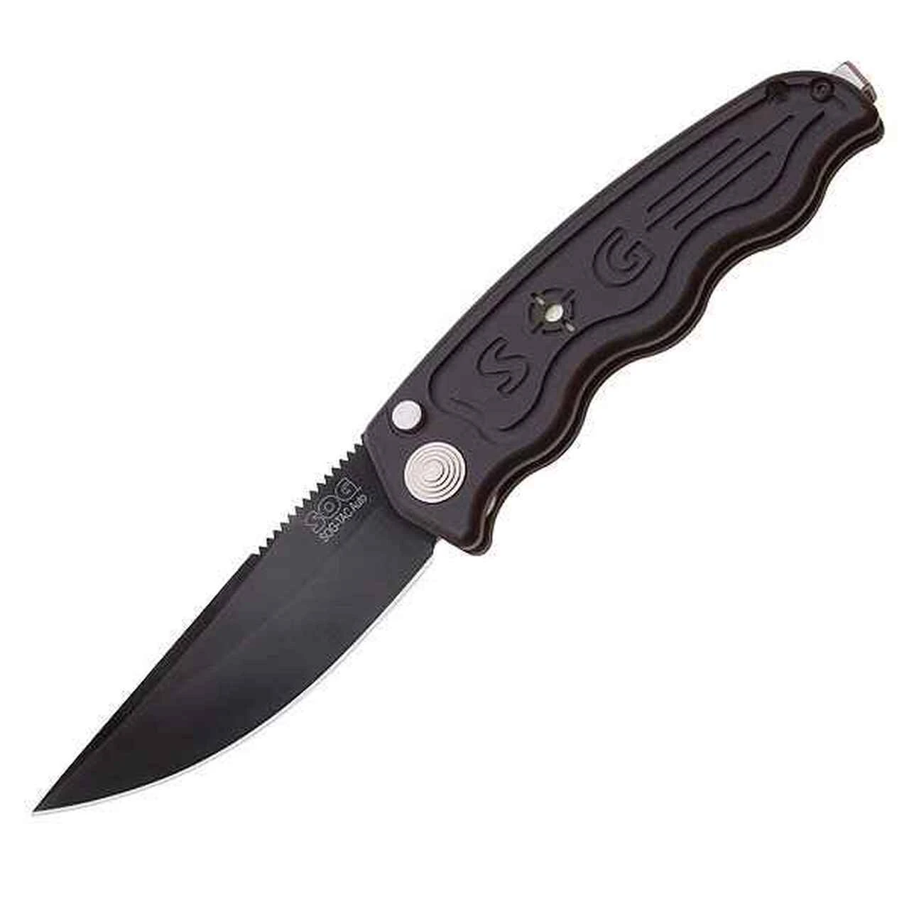 SOG-TAC ST-02 Automatic, 3.5″ AUS-8 Black TiNi Plain Blade, Black Aluminum Handle