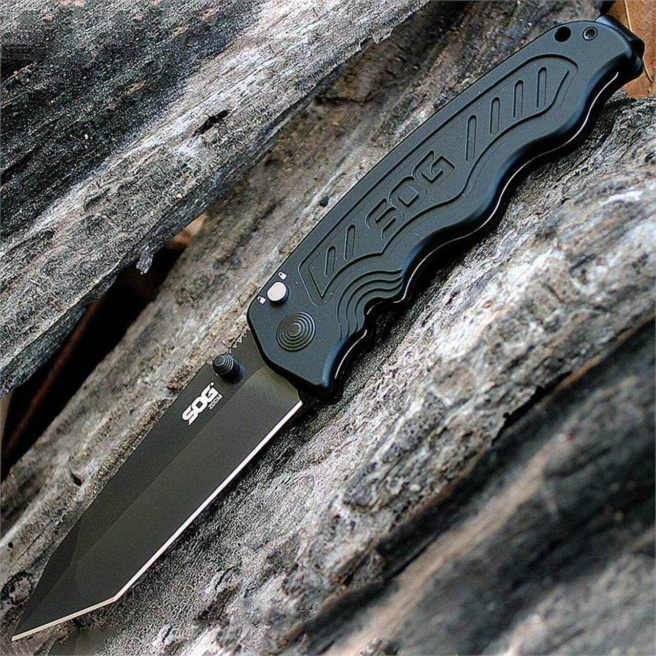 SOG Zoom Folder, AUS-8 Tanto, Black TiNi, Black Aluminum Handle