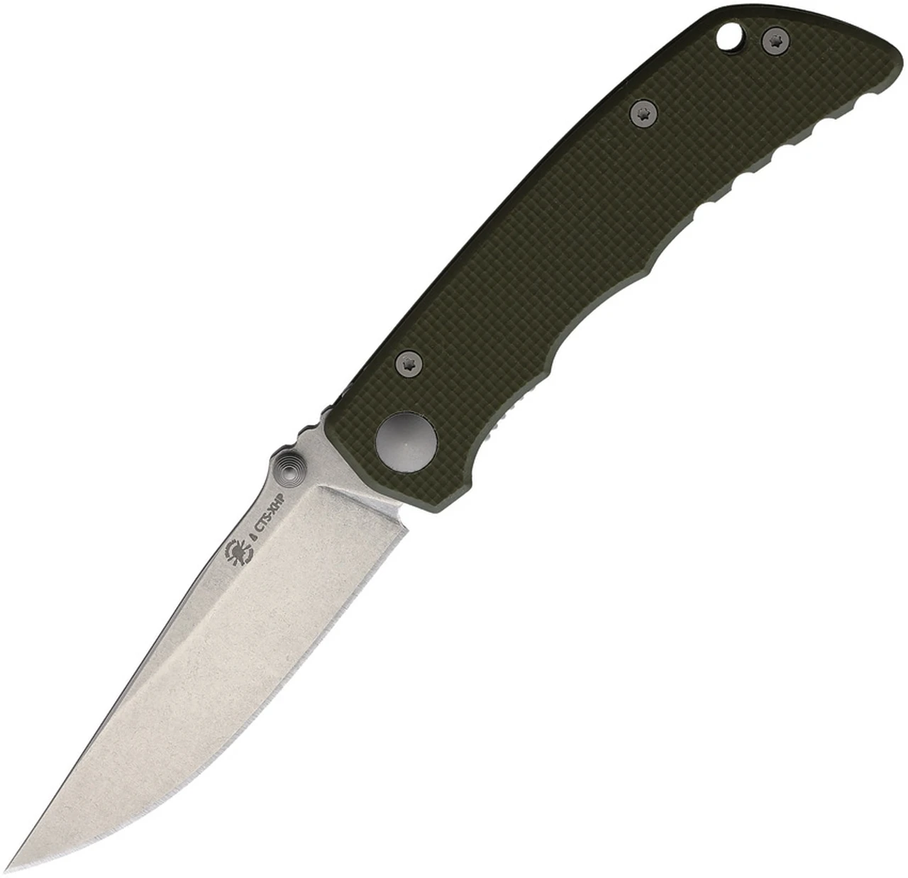 Similar in design to the incredibly popular Harsey, the Talos features the same rugged build quality, but is part of the Field Grade line. That means it’s built with excellent materials, and every bit as tough as a Spartan knife, but comes in at a steal of a deal. This one features a stonewashed CTS-XHP blade and a green G-10 handle.