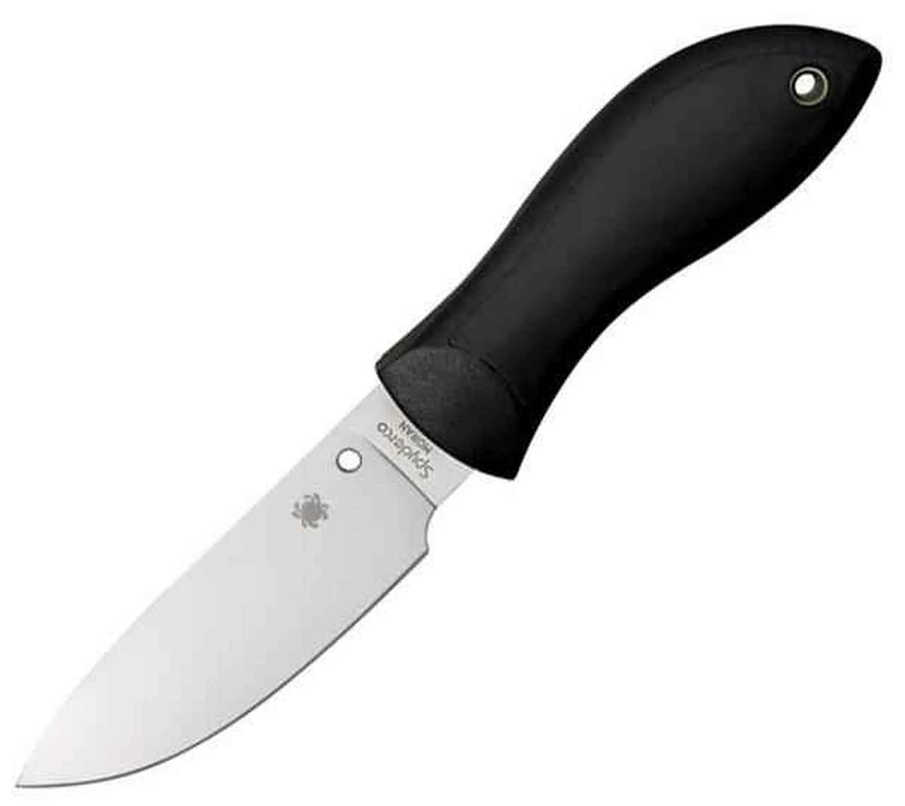Spyderco is privileged to offer a production fixed-blade collaboration patterned in Bill Moran’s ageless tradition. We’ve made it available in two distinct blade shapes. The FB02 (pictured) has a drop-point shape while the FB01 has an upswept Bowie-style blade. Both blades are flat-ground VG-10 and carry Bill’s signature. They are tapered, starting thick where the blade joins the handle, thinning down the spine to a fine, uniformly ground tip. In the hand the knife conveys a unique feeling of balance, called by some a sweet spot. The sweet spot is due to the blade and handle being comparable in weight. This balance transfers into a feeling of steady control over the cutting edge. The FRN handle three-dimensionally fills out the palm and is inlayed with a panel of non-sliding Kraton. Highly recommended for hunting and camping both models come in a molded Boltaron sheath with multi-position G-Clip fastening system.