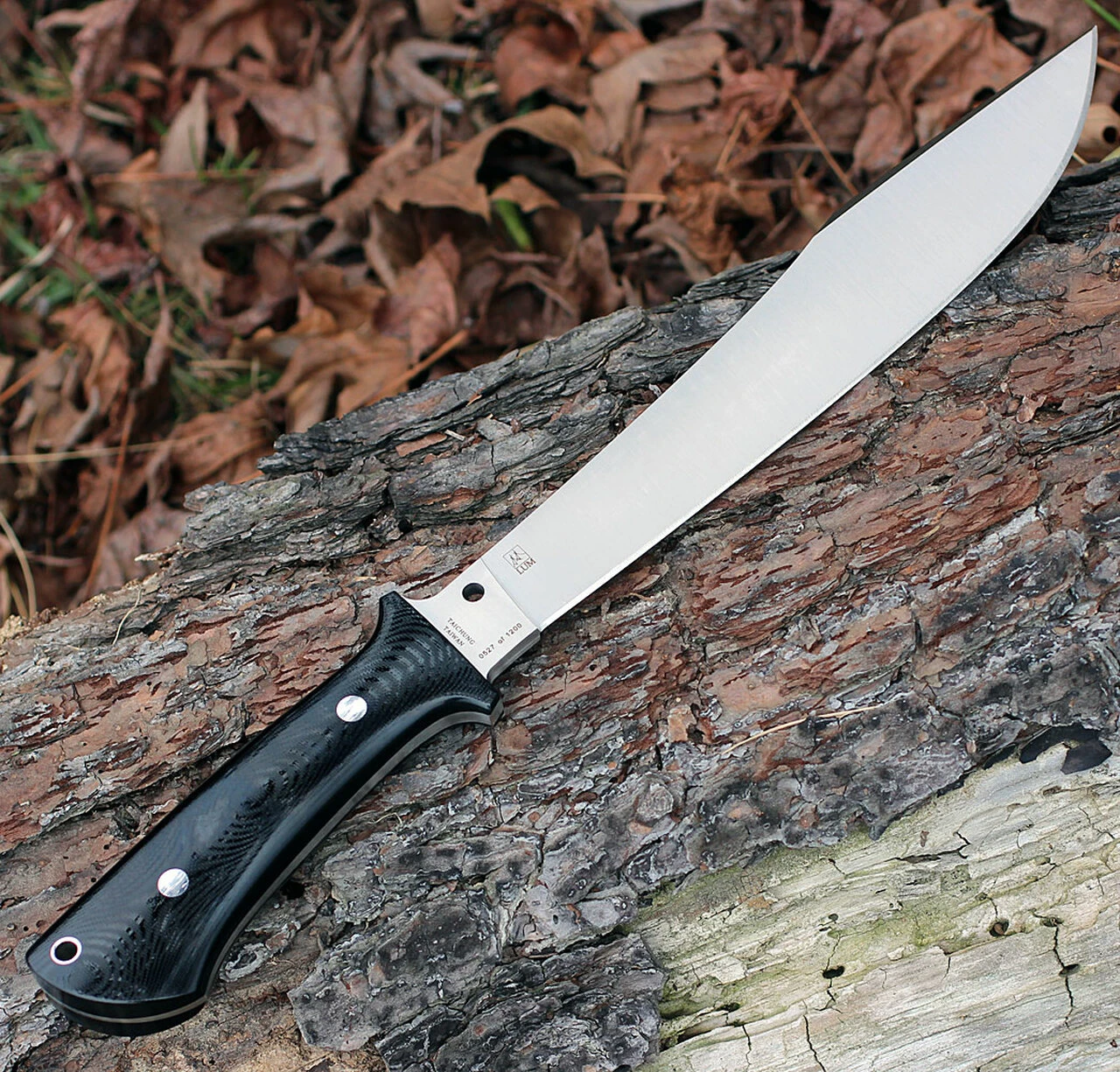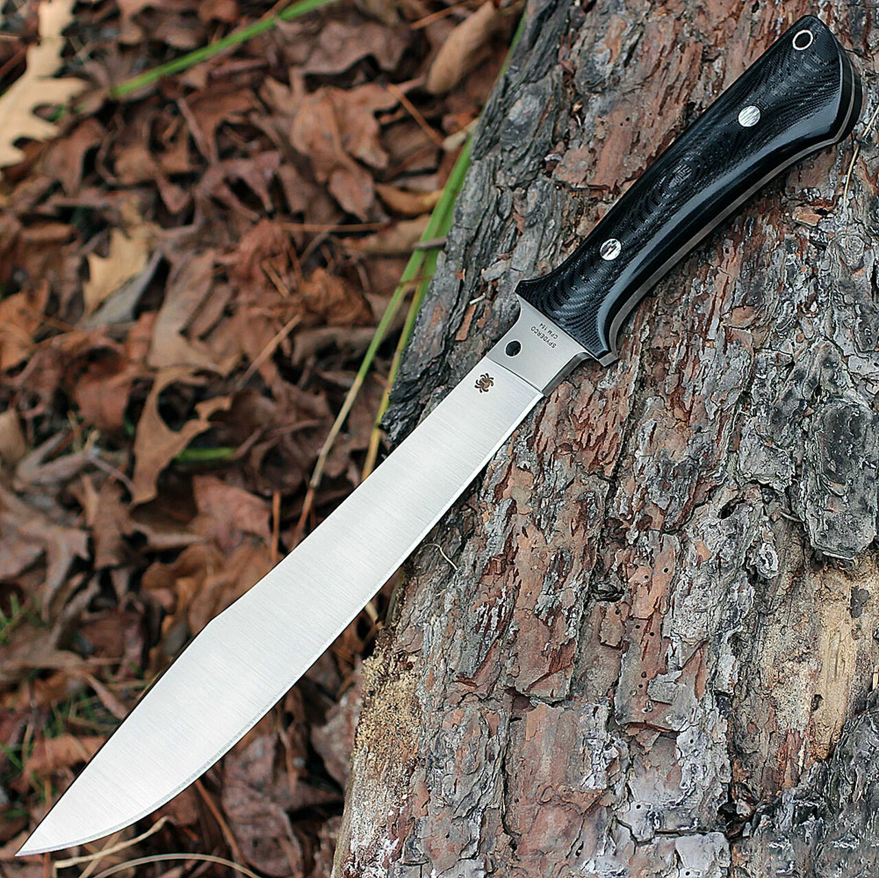 The Spyderco Darn Dao faithfully translates every detail of Bob Lum’s meticulously crafted custom design into an equally dynamic production knife. Its satin-finished blade is full-flat ground from thick CPM® 154 stainless steel—a state-of-the-art powder metallurgy stainless steel that offers increased toughness over the conventional ingot version of this alloy. The blade’s unmistakable profile pays homage to the iconic weapon that inspired it, while adding a long, unsharpened swedge to ensure an acute point. For maximum strength and a deft balance, the gracefully curved blade has a tapered full tang that is flanked by contoured black G-10 scales. Like its historical inspiration, the Darn Dao’s handle flares at the pommel to ensure a positive grip during high-speed manipulation. It also features a generously sized lined hole for the easy attachment of a lanyard and a modern integral double guard.