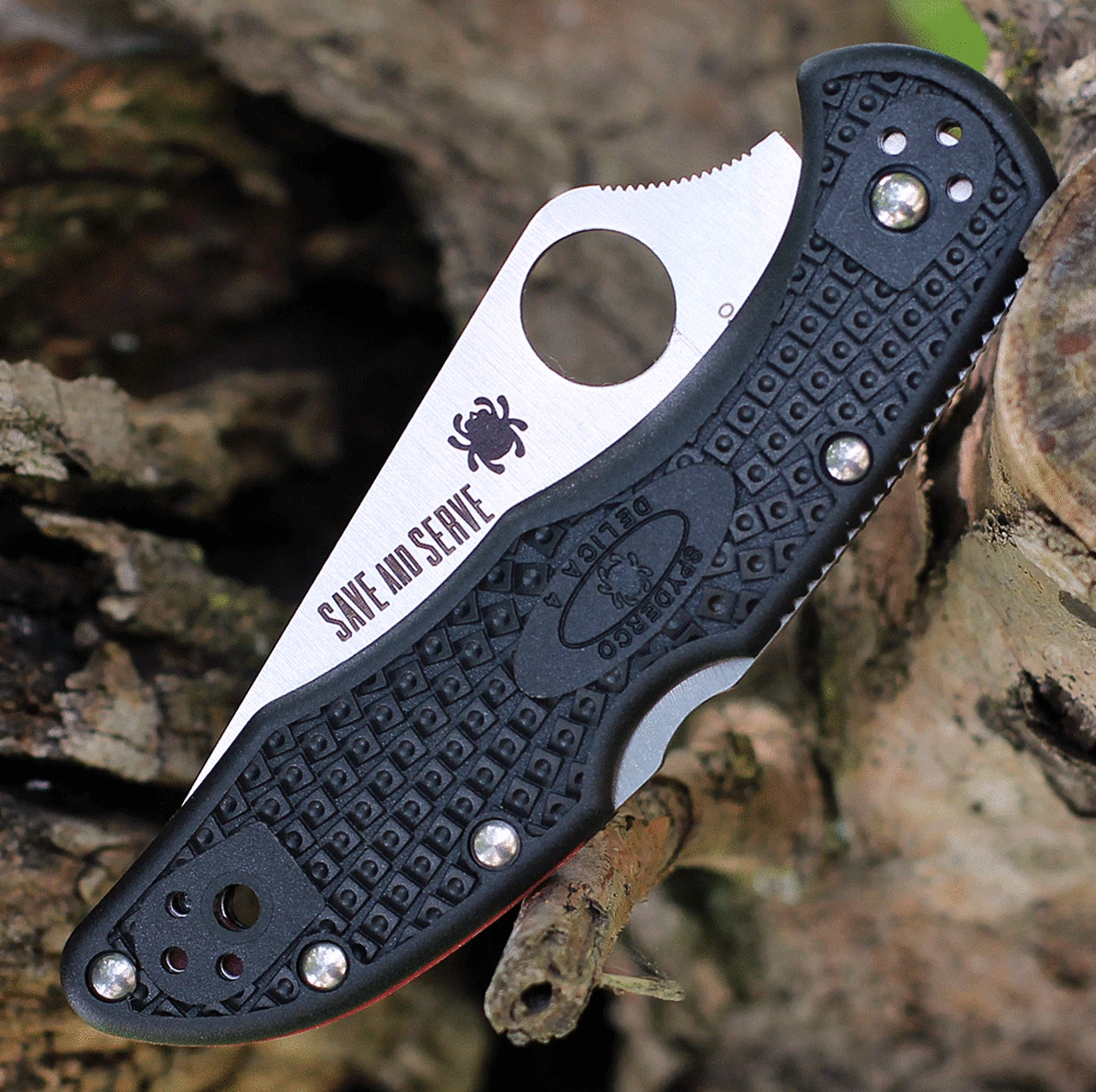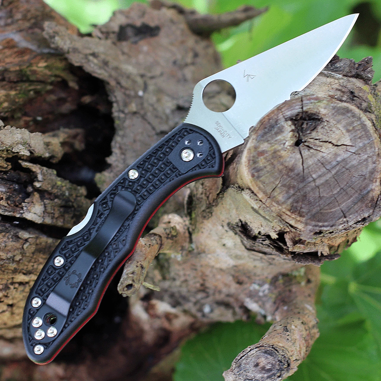 Spyderco Delica 4 Thin Red Line 2.90″ Satin Partially Serrated Blade, Black FRN Handle – C11FBKRD