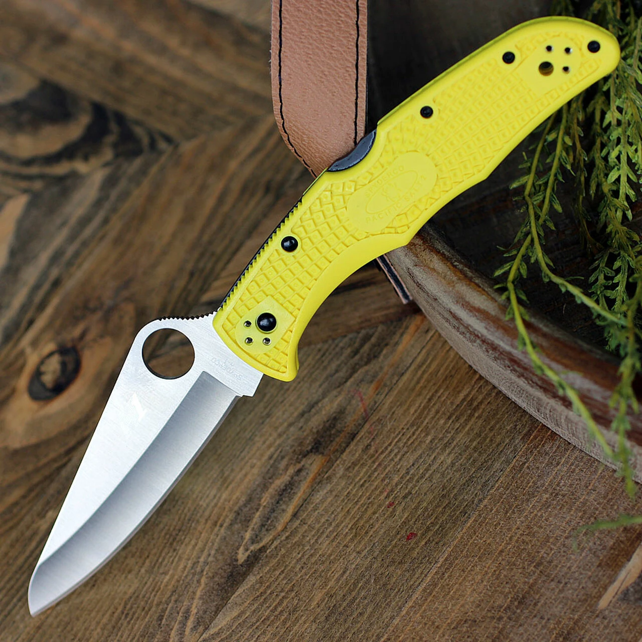 Its linerless construction also further reduces the knife’s weight and its vulnerability to corrosion. This version of the Pacific Salt 2 features a bright yellow handle that is easy to see in and around the water with a choice of a PlainEdge™ or fully serrated SpyderEdge™ blade.
