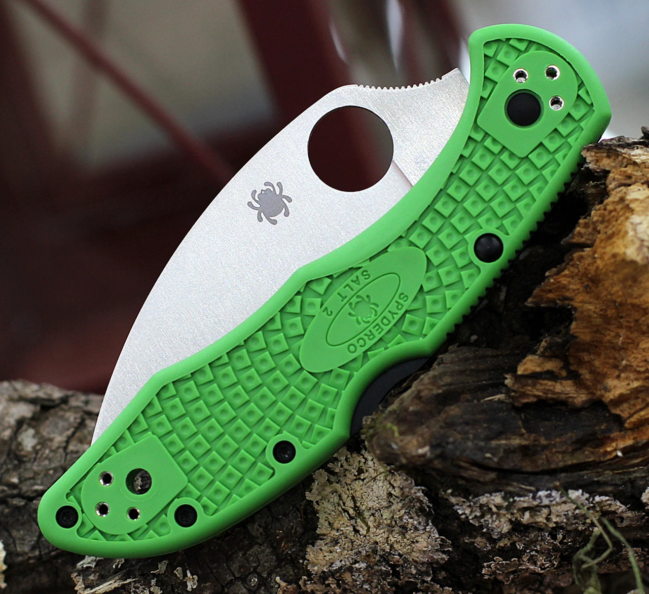 Available with a choice of a PlainEdge or fully serrated SpyderEdge, this remarkable knife proudly shares all the other proven features of the Salt 2, including a sturdy back lock mechanism, a Bi-Directional Textured™ fiberglass-reinforced-nylon (FRN) handle, and a four-position titanium pocket clip. Like our other LC200N lightweight Salts, this knife also showcases a high-visibility green handle color.