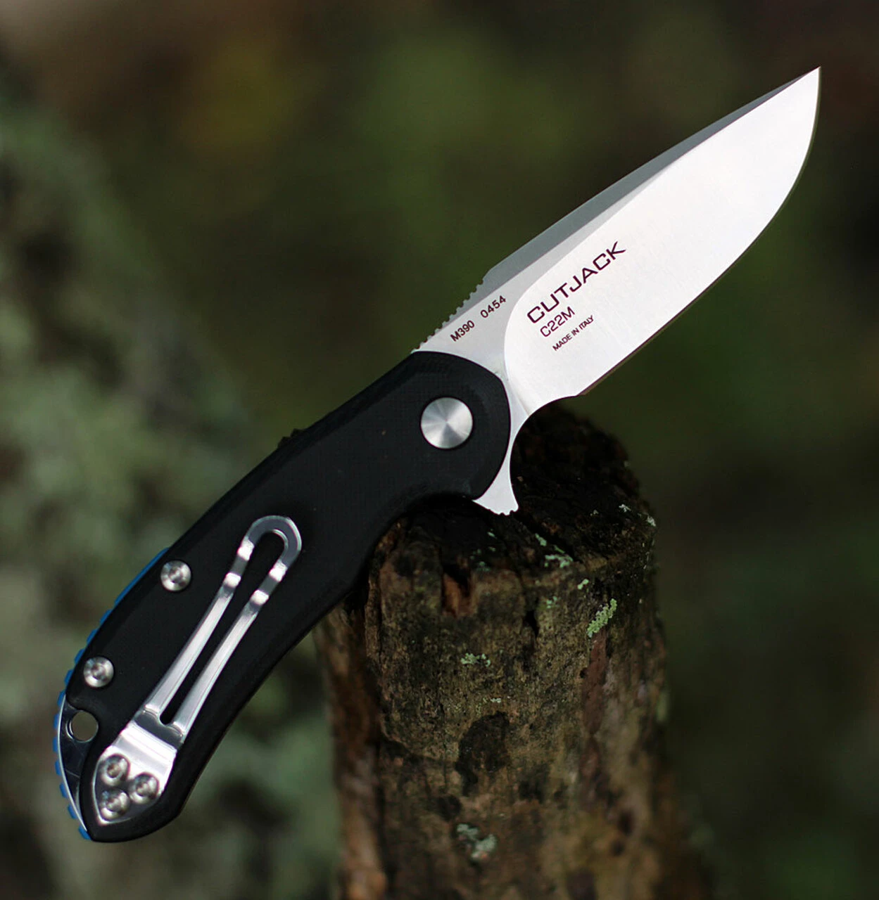 Mini version of the Cutjack C22-2, featuring a Bohler-Uddeholm M390 steel blade that is ½ inch smaller than the full size Cutjack. The ideal size for those wanting a smaller EDC knife, the Cutjack Mini’s 3-inch blade will easily tackle most common tasks. The convenient finger choil and notches on the spacer allow for excellent control over this knife. Made in Italy.