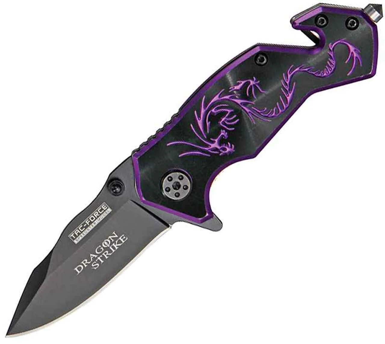 Tac Force Dragon Strike A/O, Stainless Blade, Purple Anodized Aluminum Handles