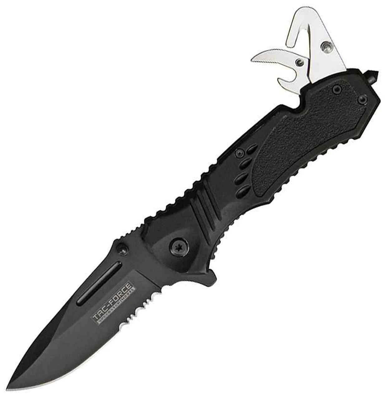Tac Force Speed Assisted Rescue, Stainless Blade, Black Finish Aluminum Handles