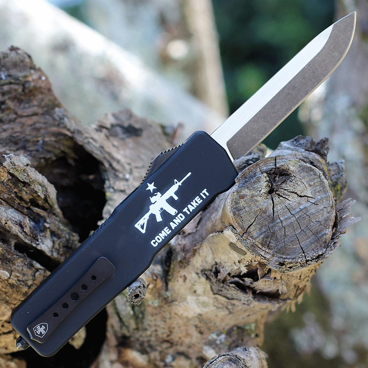 Templar Knife Premium Lightweight Series – Large OTF Automatic (LA-AR15-32-1) – 3.55″ Powder D2 Black SW Drop Point, Aluminum Black “Come And Take It” W/ AR15 Handle