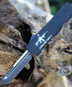 Templar Knife Premium Lightweight Series – Large OTF Automatic (LA-AR15-22-1) – 3.55″ Powder D2 Black SW Tanto, Aluminum Black “Come And Take It” W/ AR15 Handle