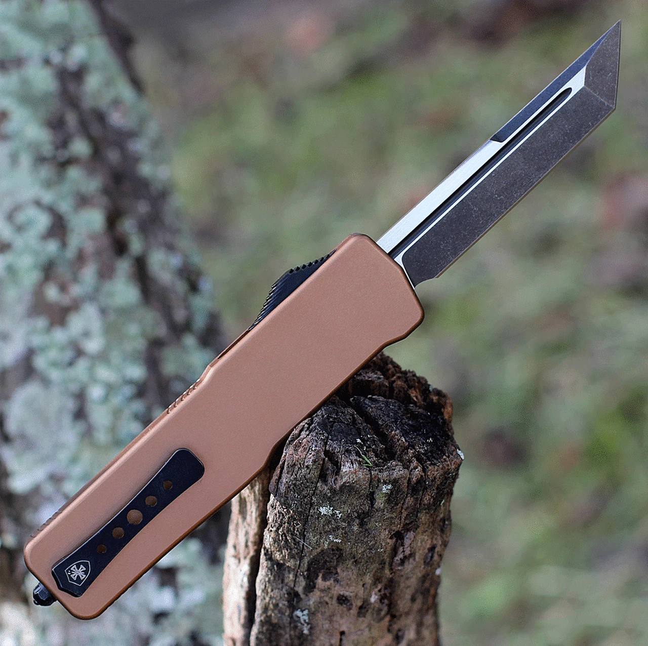 Templar Knife Premium Lightweight Series – Large OTF Automatic (LA-AB-22-1) – 3.55″ Powder D2 Black SW Tanto, Aluminum Bronze Handle