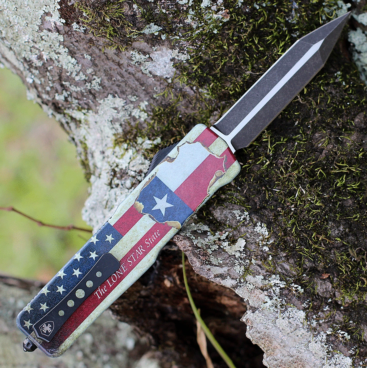 Templar Knife Premium Lightweight Series – Large OTF Automatic (LA-TX-12-1) – 3.55″ Powder D2 Black SW Dagger, Aluminum Texan “The Lone Star State” Handle