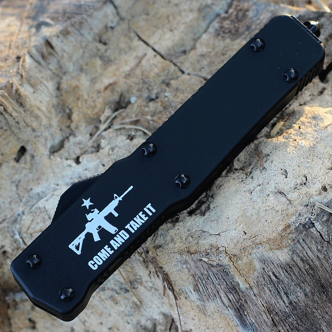 Templar Knife Premium Lightweight Series – Slim OTF Automatic (MA-AR15-12-1) – 3″ Powder D2 Black SW Dagger, Aluminum Black “Come And take It” W/ AR15 Handle