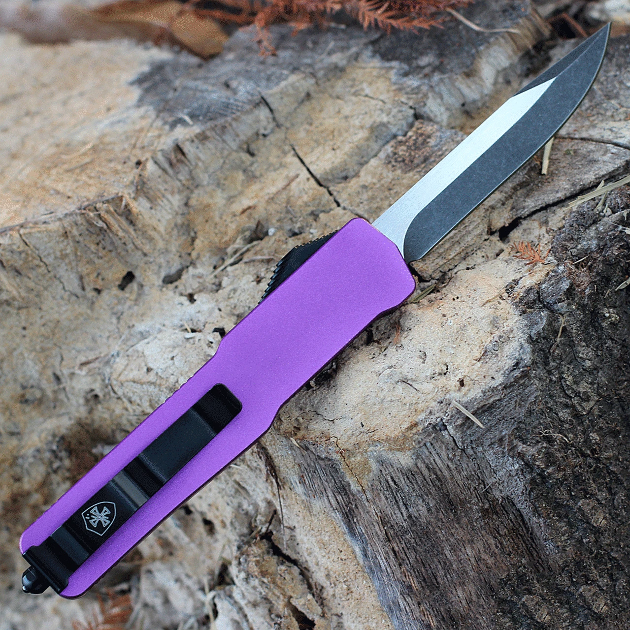 Templar Knife Premium Lightweight Series – Slim OTF Automatic (MA-AP-32-1) – 3″ Powder D2 Black SW Drop Point, Aluminum Purple Handle