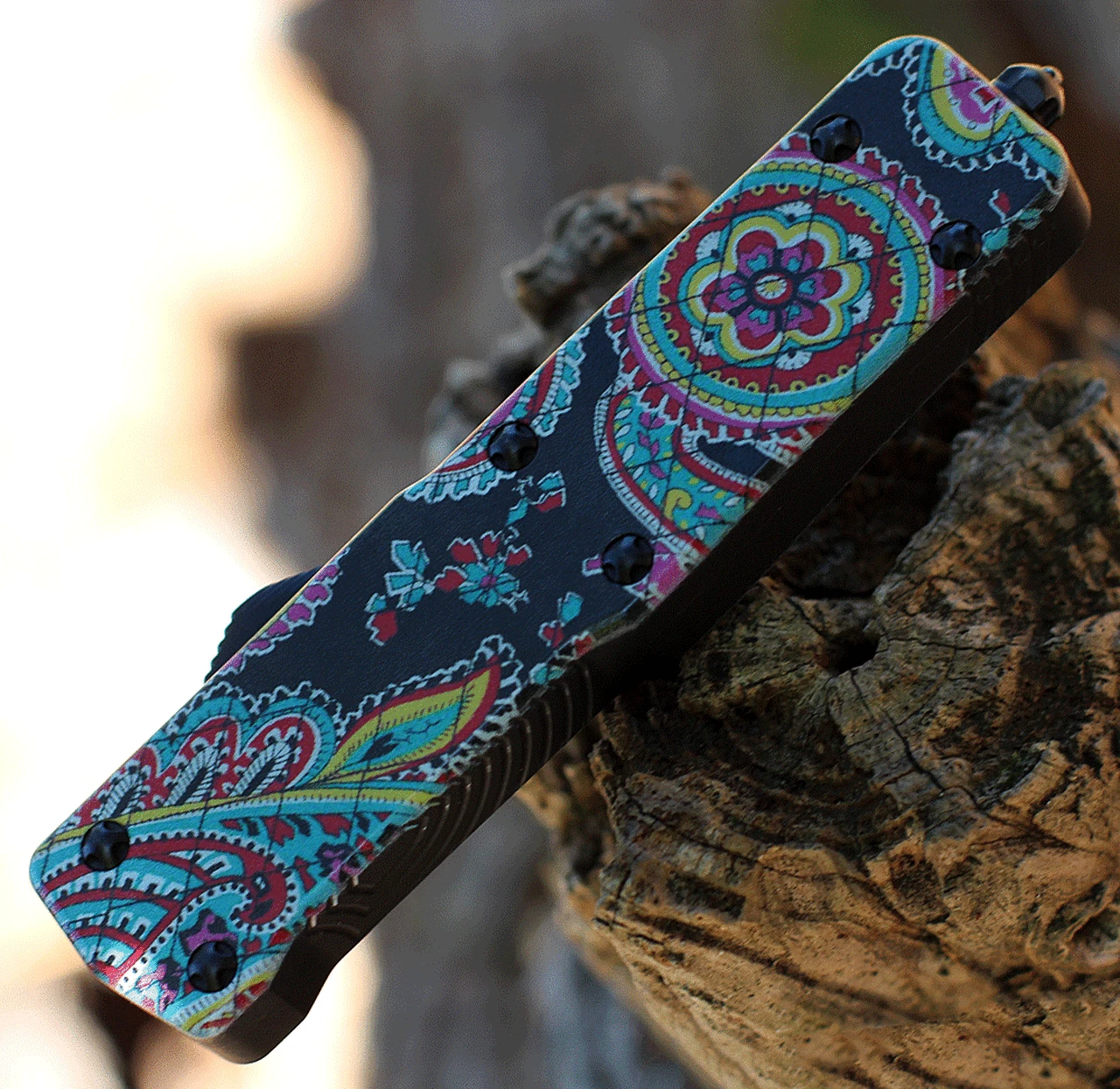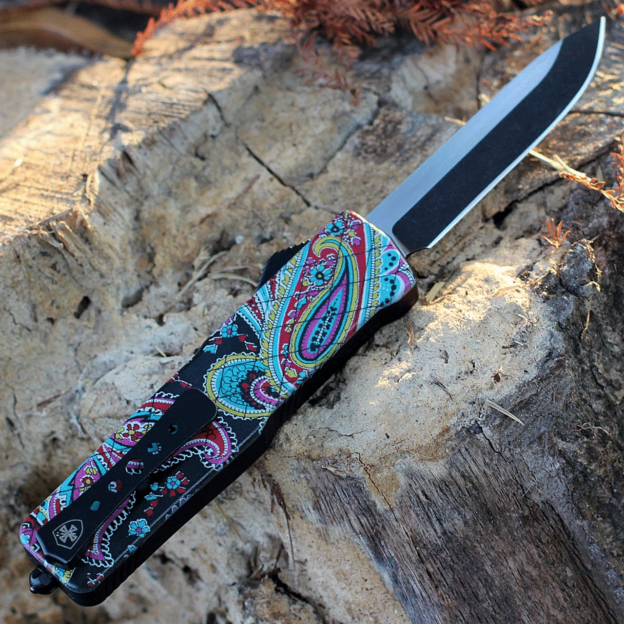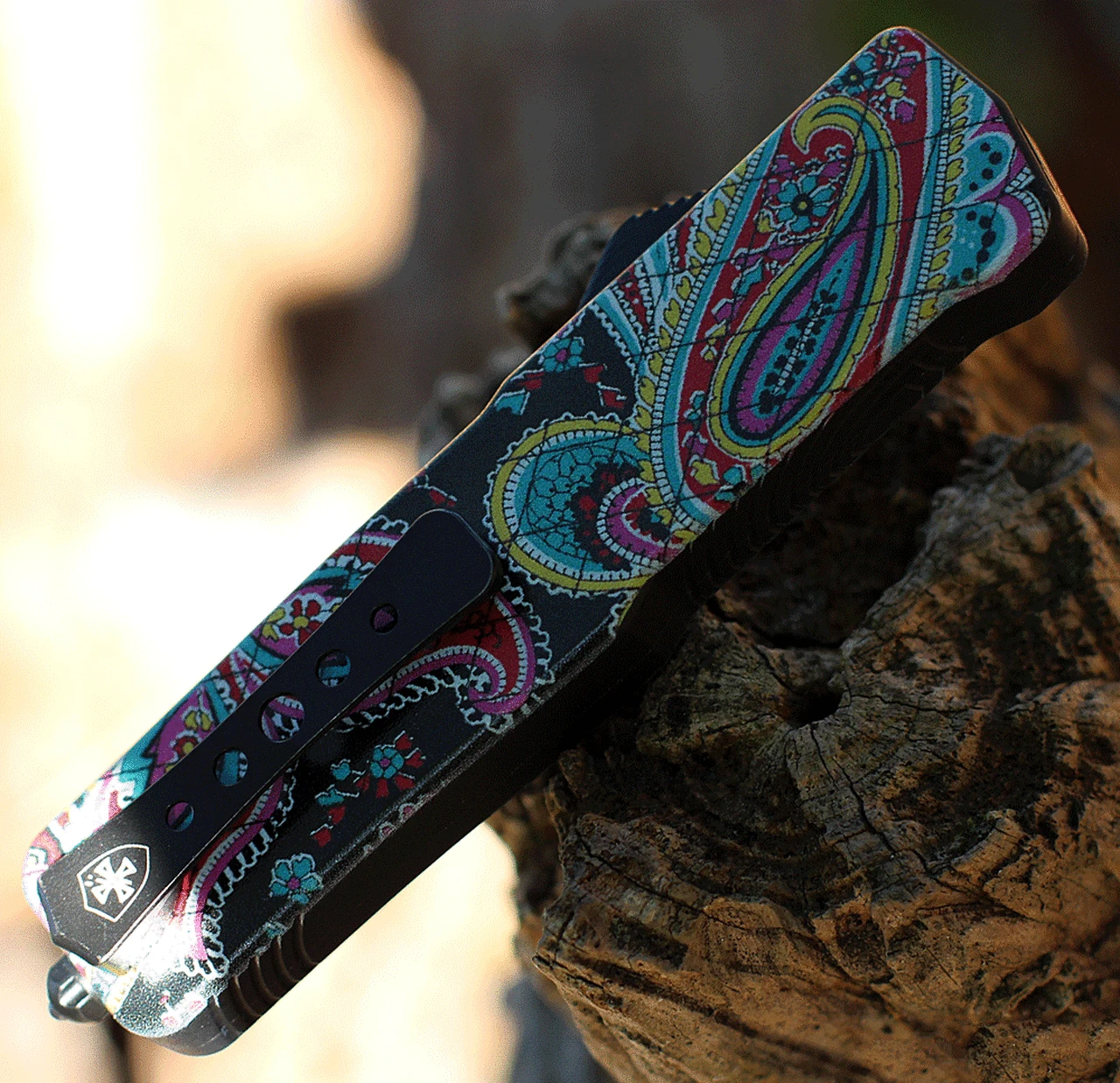 Templar Knife Co. Templar Premium Lightweight Small OTF -Alum. Quilt (3″ D2 Blk Drop Point) SA-QT-32-1