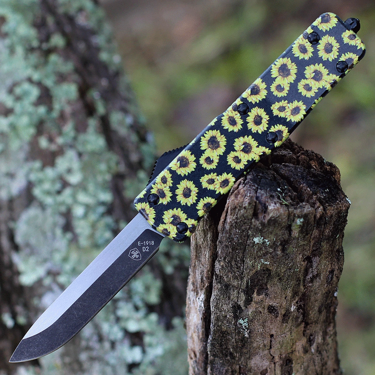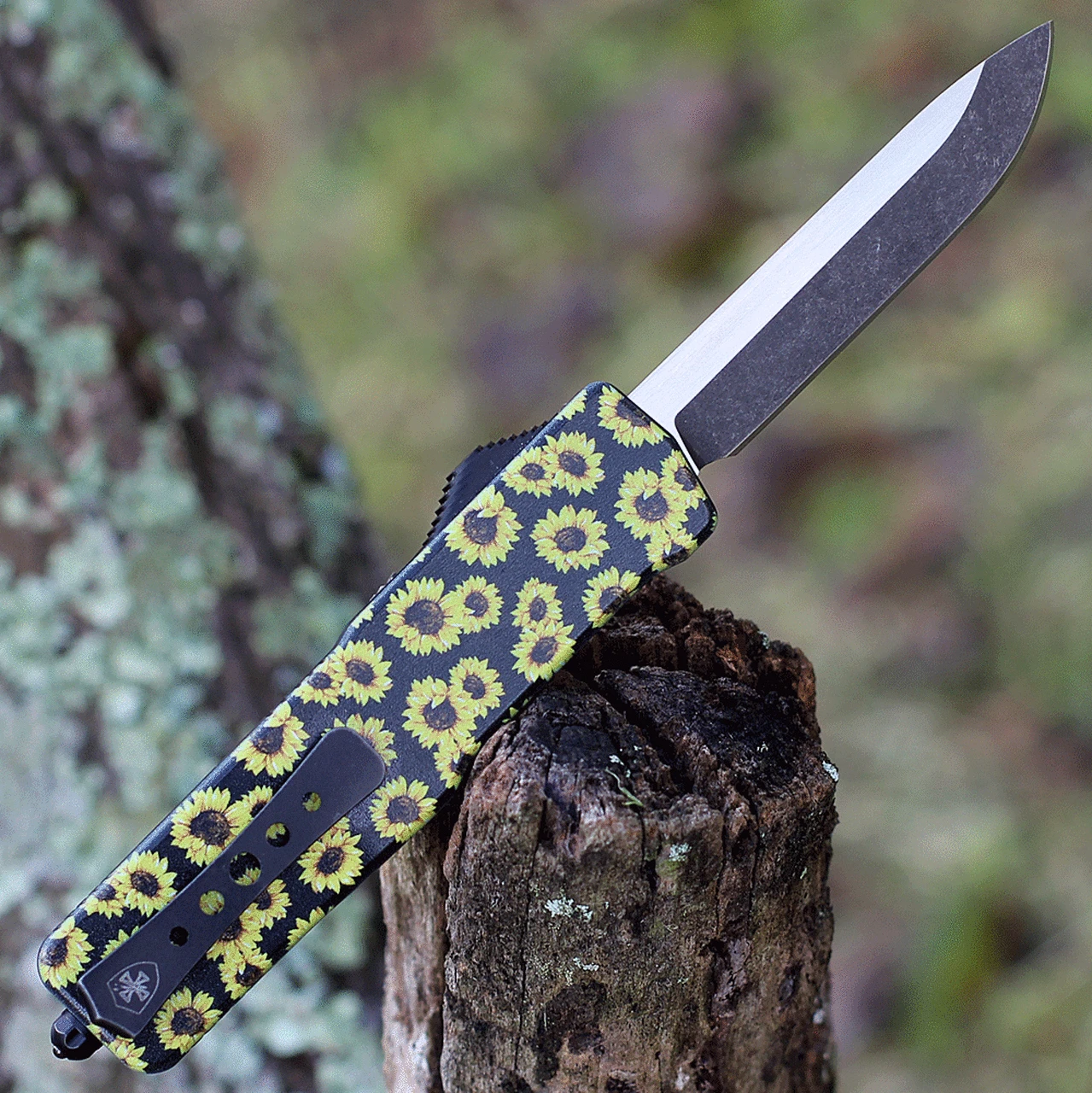 Templar Knife Premium Lightweight Series – Small OTF Automatic (SA-SUN-32-1) – 3″ Powder D2 Black SW Drop Point, Aluminum Sunflower Handle