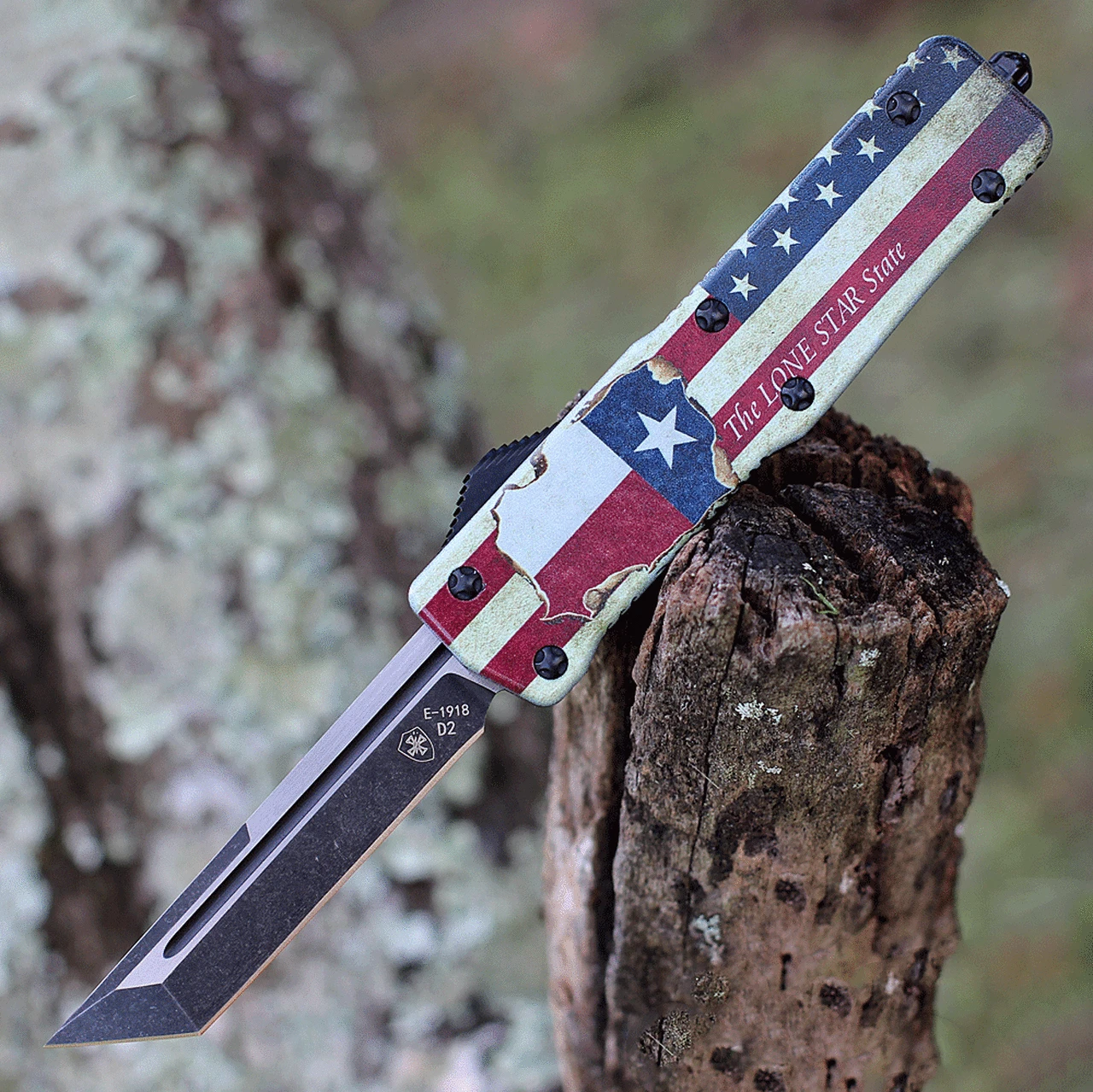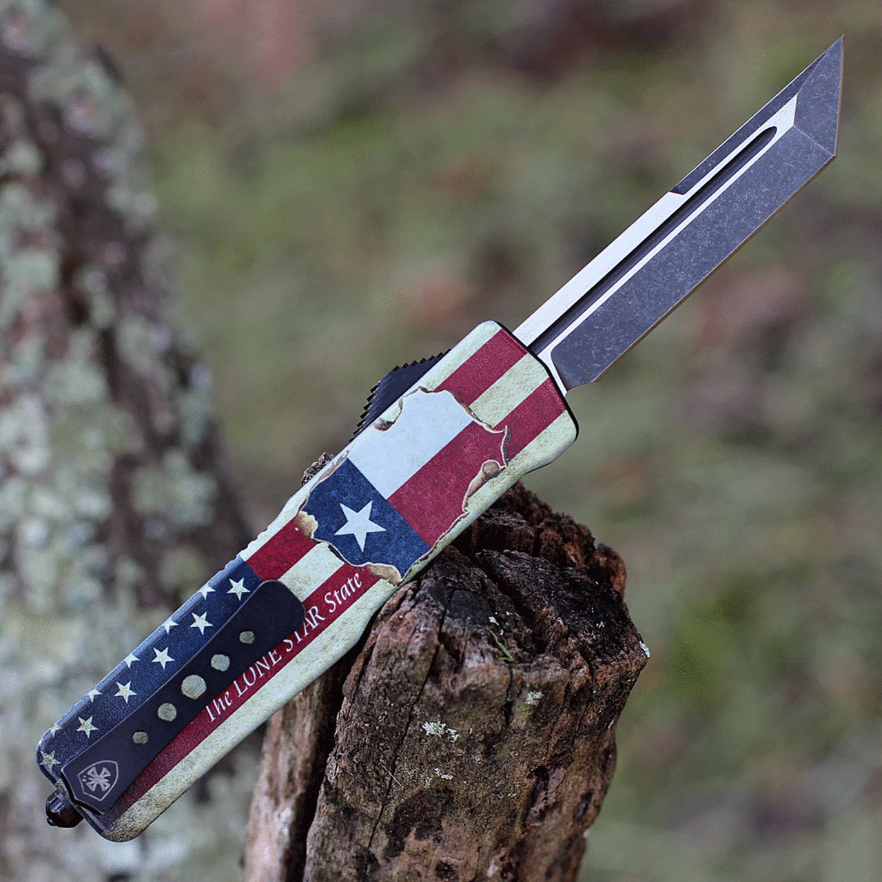Templar Knife Premium Lightweight Series – Small OTF Automatic (SA-TX-22-1) – 3″ Powder D2 Black SW Tanto, Aluminum Texan “The Lone Star State” Handle