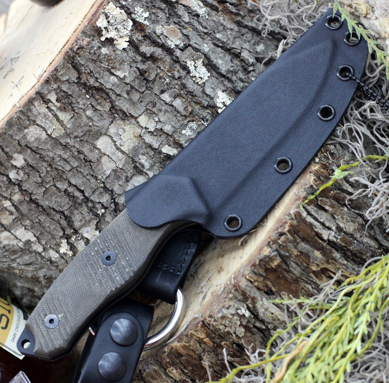 His inspiration for the design was as simple as it gets. Make sure it has a comfortable handle, a simple, effective blade design, and a Kydex sheath that makes it easy to wear the knife on your hip every day. The Green Canvas Micarta handles have excellent ergonomics including a nice swell in the middle and a good guard for safety, with some added tread to improve the grip when it is needed the most. Luis wanted it to have a strong, but also fine tip so that it could have good penetration for stabbing and still be utilitarian. The sheath is a simple setup with a dangler that makes it easy to carry daily whether you’re sitting, standing, walking, or operating. Get yours today and you’ll see that he nailed it.