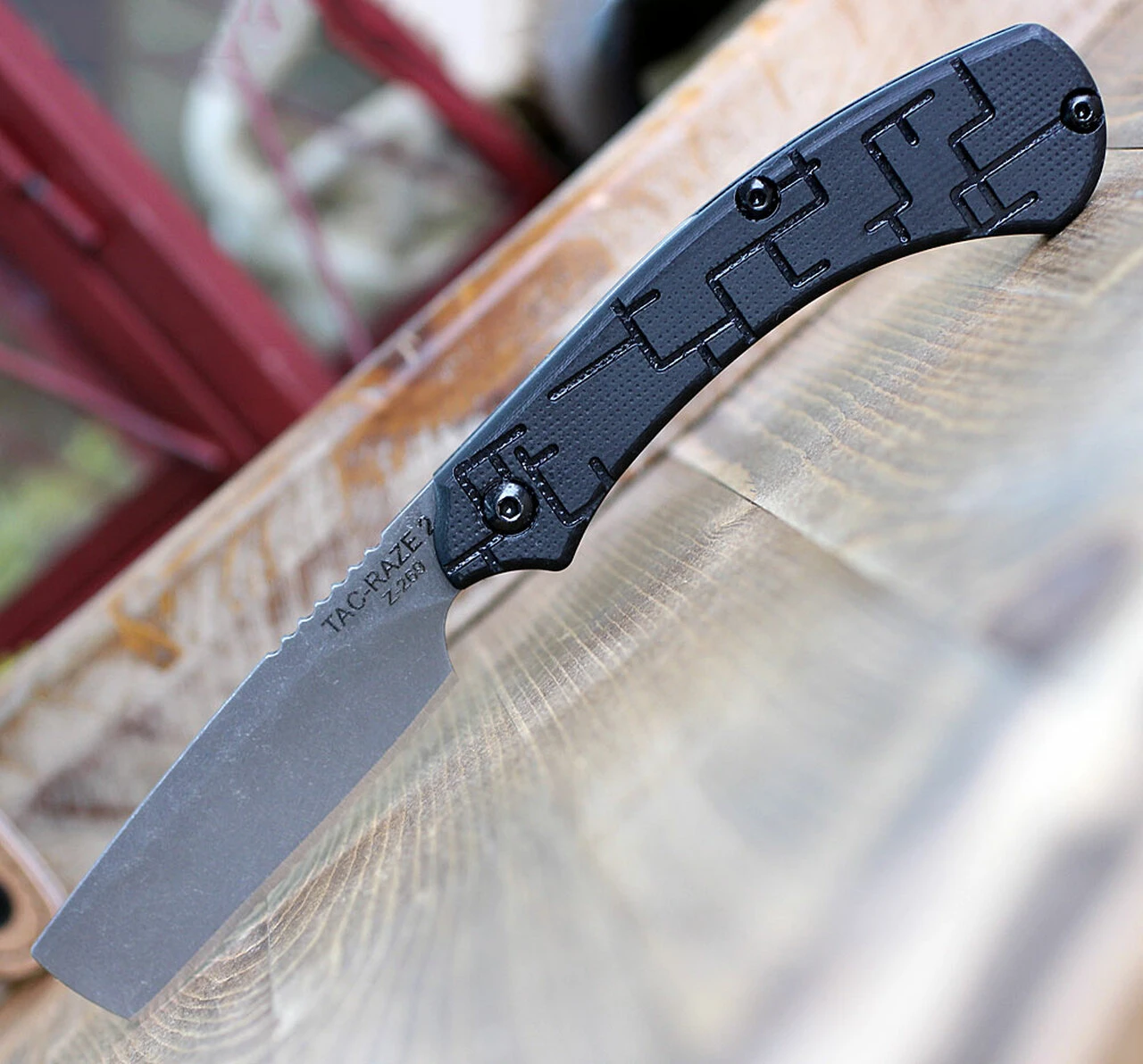 Tops Knives TRAZ03 Tac Raze Friction Folding Knife , 3.13 1095 RC Tumble Finish, Black G10 Handles