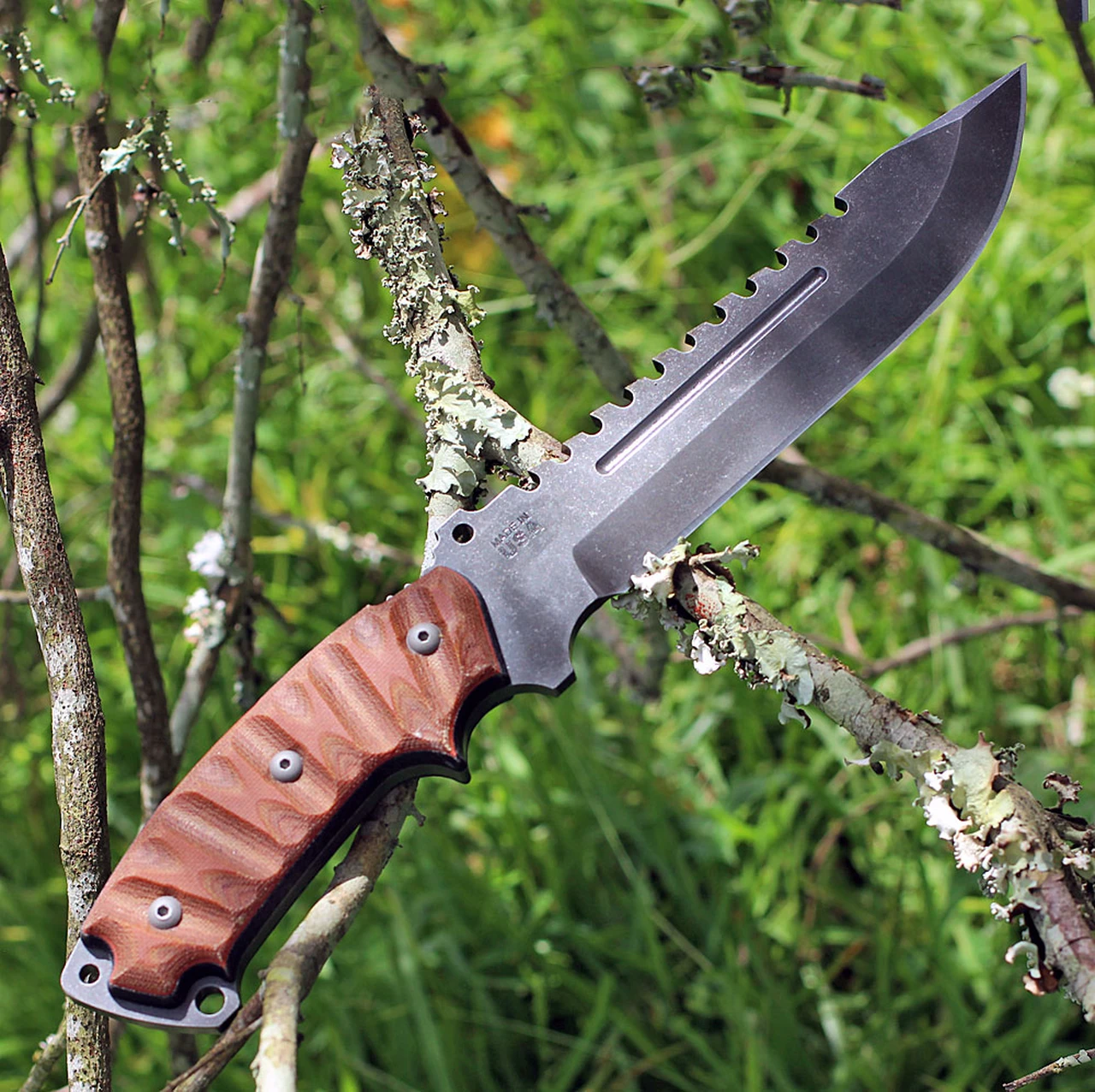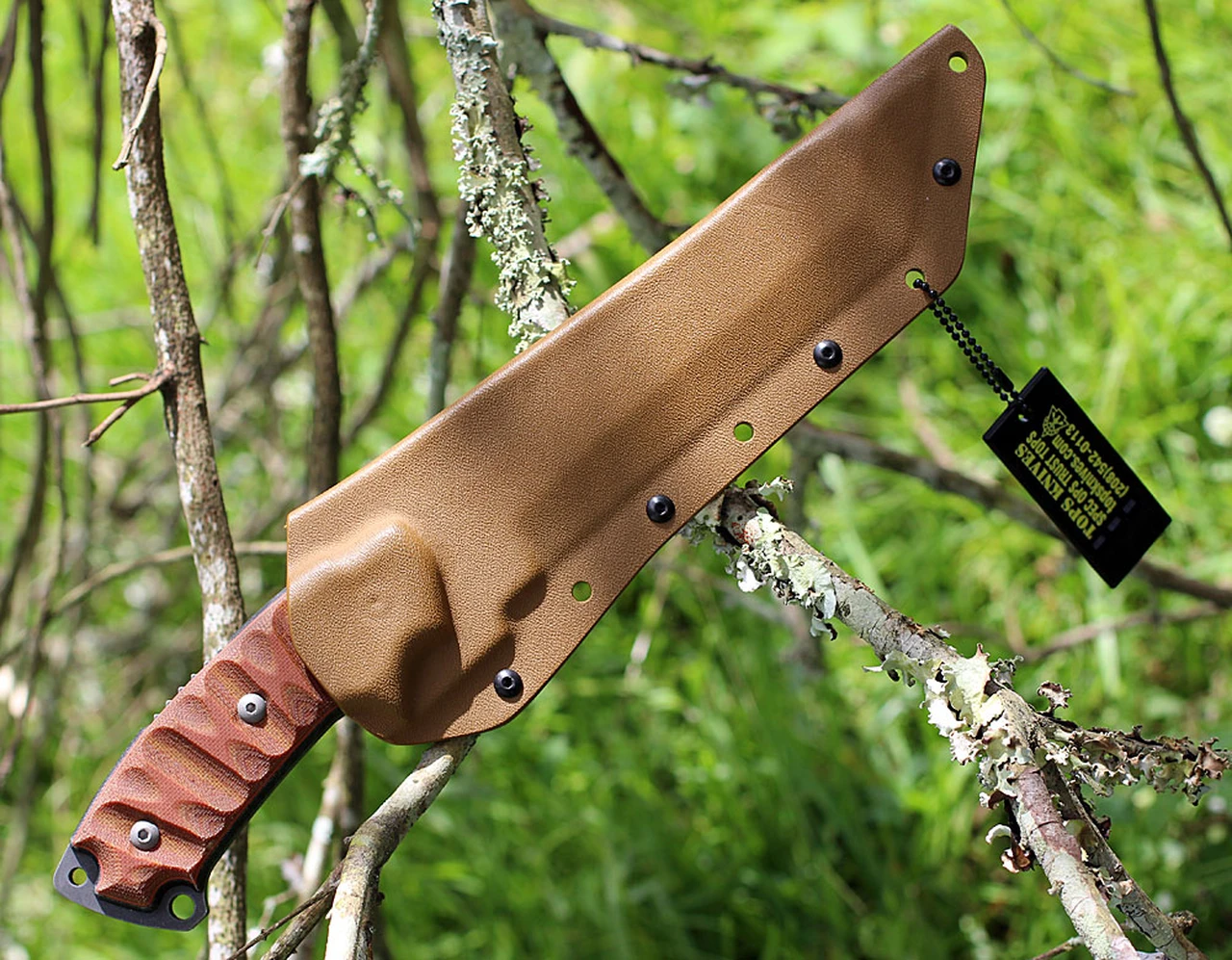 This Steel Eagle Delta Class model also comes with the Acid Rain finish, sandwiched Micarta, and the tan Kydex just like its tanto point counterpart. It also comes with the same strength, durability, versatility, and dependability as the 107D.