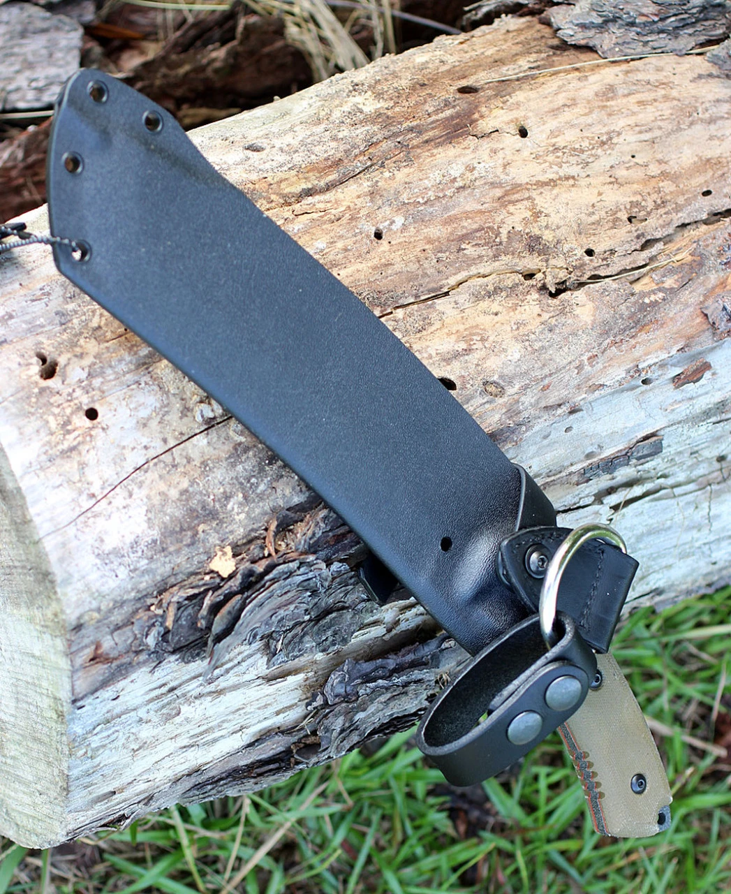 The Tundra Trekker comes with our robust Tactical Stone powder coat finish, Green Canvas Micarta, and an open-backed Kydex sheath with a leather dangler to make it easy to carry through thick brush and trees. It will excel in anything from chopping wood, to making traps and tent pegs, clearing brush, and whatever else you might decide to throw its way.