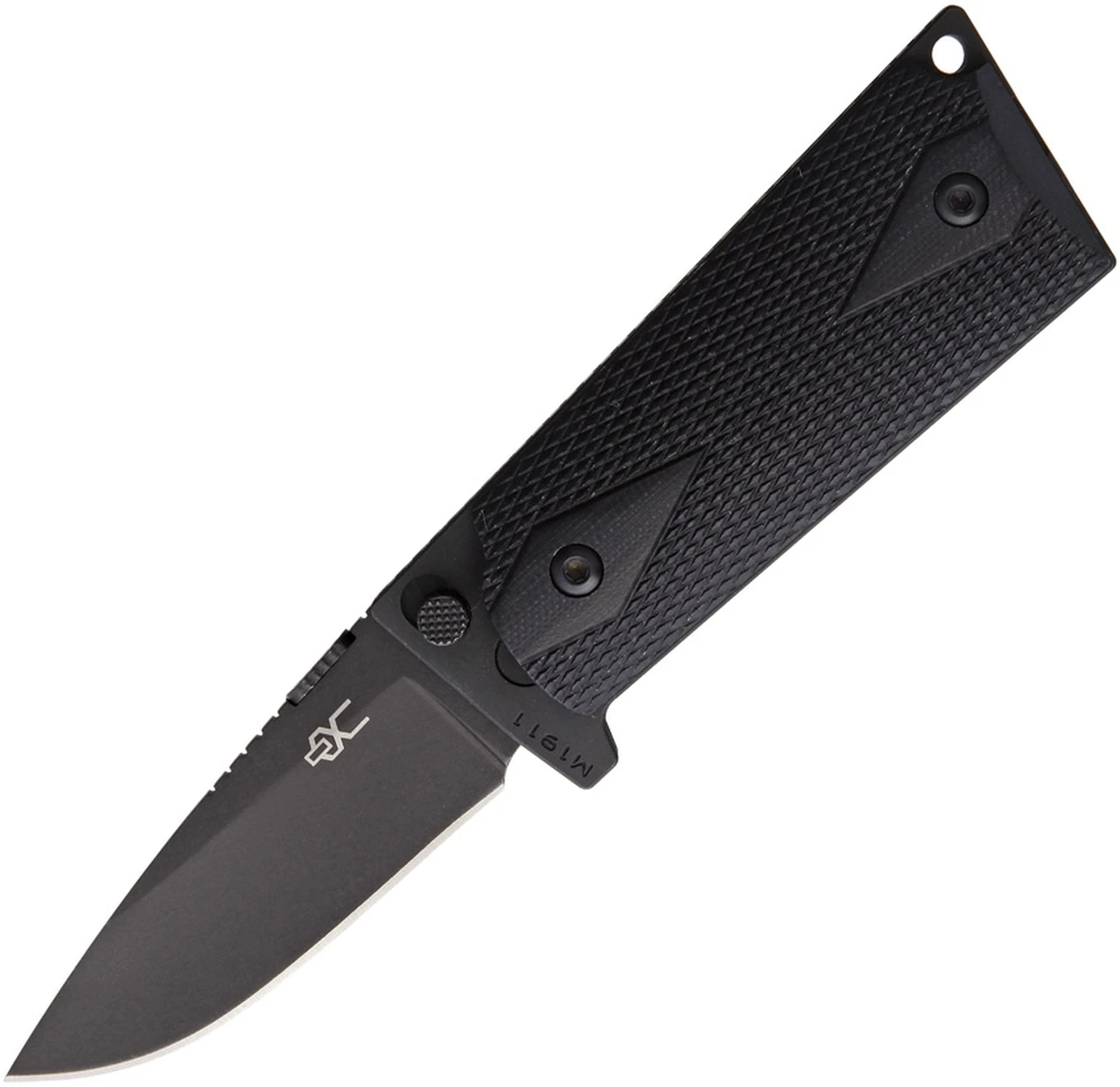 Ultimate Equipment M1911 Compact Hammerhead UECKGB, 4.2″ 440C Stainless Black Titanium Blade, Black Checkered G-10 Handle