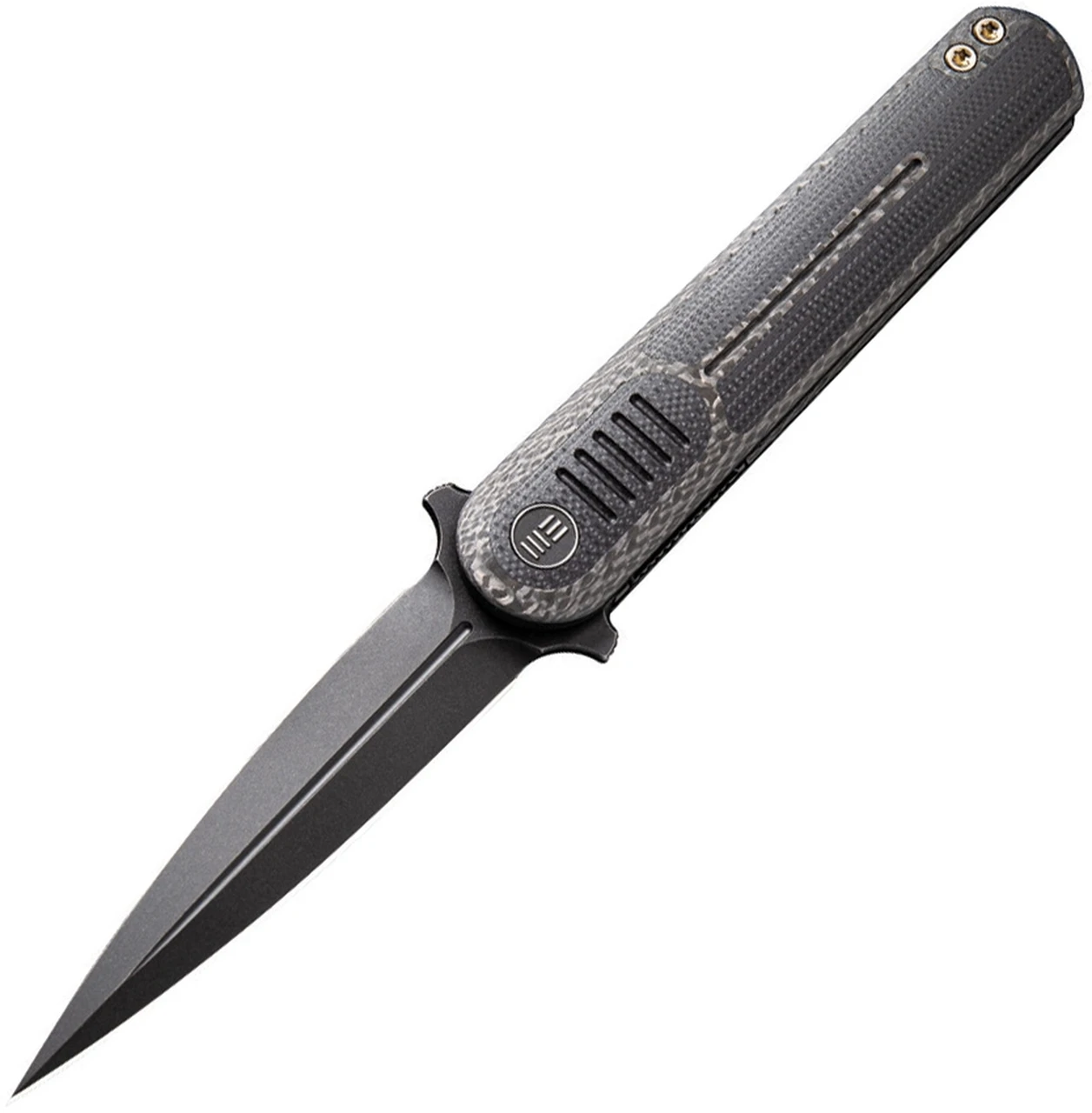 WE Knife Co. Angst 2002C, 3.06″ CPM S35VN Black Stonewashed Dagger Blade, Black G-10 & Black Twill Carbon Fiber Handle