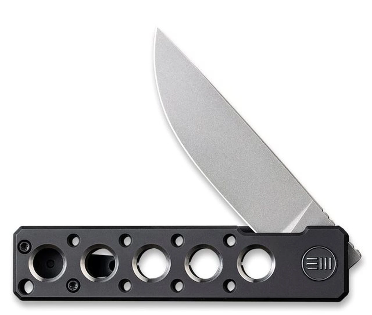 WE Knife Co. Miscreant 3.0 2021B, 3″ CPM-20CV Stonewashed Drop Point Plain Blade, Black Titanium Handle