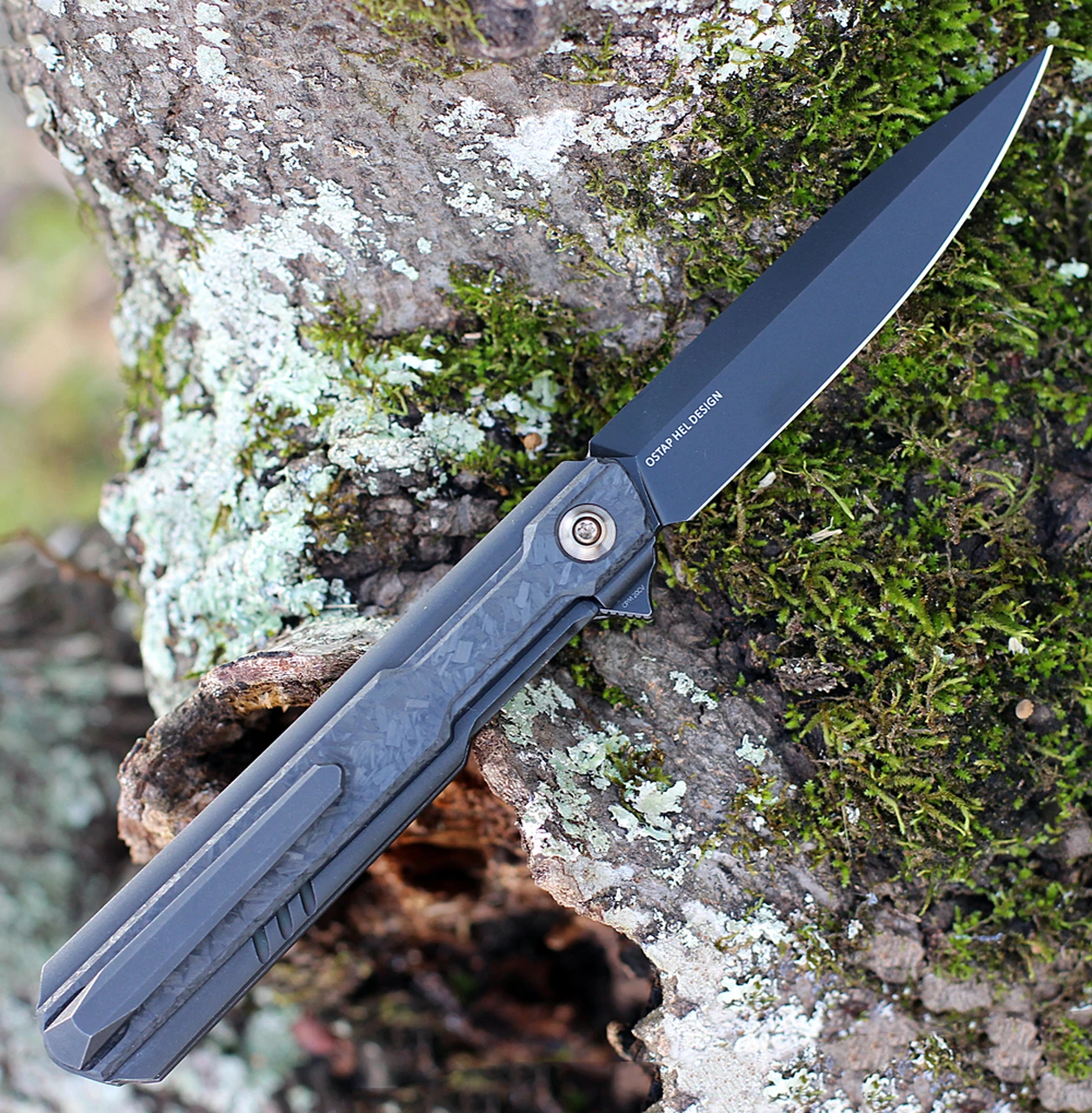 WE Knife Co. Peer, 2015D, 3.5″ CPM 20CV Black Stonewashed Blade, Titanium Handle with Shredded Carbon Fiber Overlay