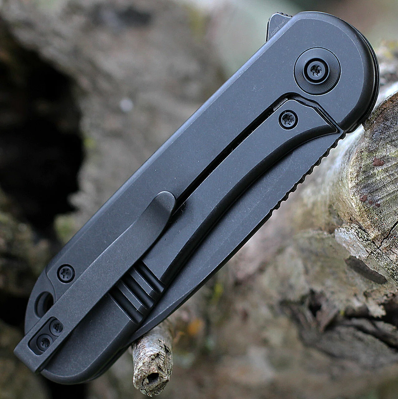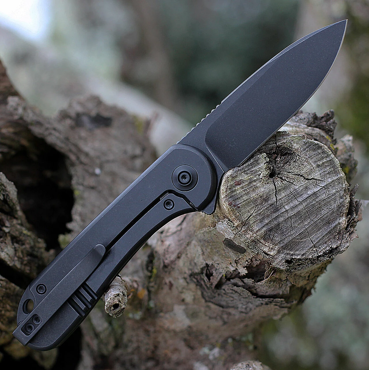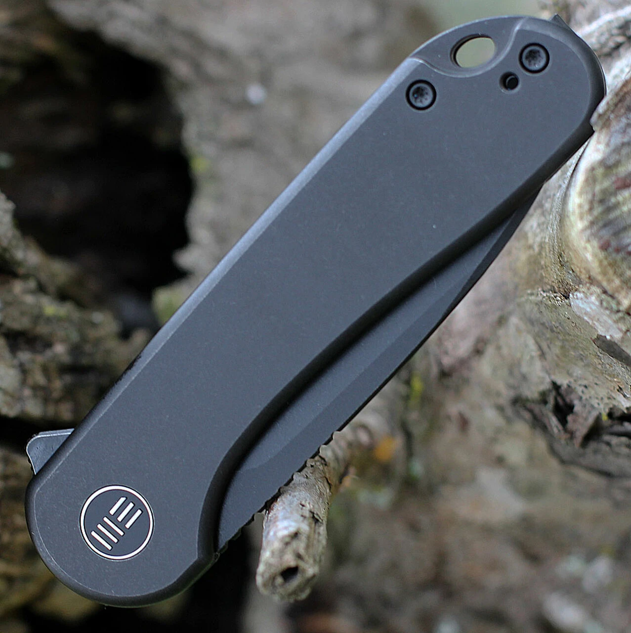 WE Knife Elementum Frame Lock (WE18062X-3) – 2.96″ CPM 20 CV Black Stonewashed Drop Point Blade, Black Titanium Handle