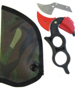 The Wyoming Knife handle is constructed of one-piece and made of a glass filled polymer called grivory 4h that is virtually indestructible. The blade is made from razor-sharp surgical steel. This knife measures 5 3/4″ from the tip of blade cover to the bottom of finger grip extension. Carrying case, extra blade and blade cover are included. Comes with a camouflage case.