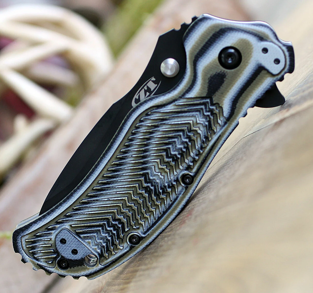 - CPM S30V stainless steel blade is extremely durable, corrosion resistant, and wear resistant; non-reflective tungsten coating adds blade hardness and reduces